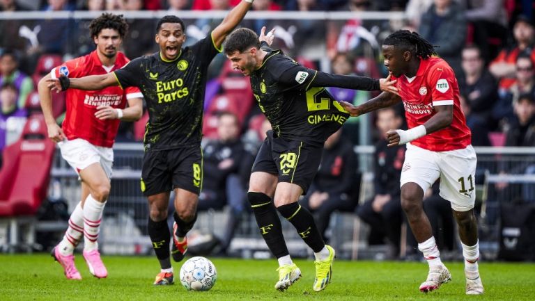 Santiago Giménez apareció cuando más se le necesitaba y terminó con seis encuentros de sequía en la Eredvisie, pues ante el PSV de visita este domingo, el ‘Bebote’ volvió a romper las redes con una diana para darle la ventaja a su equipo.