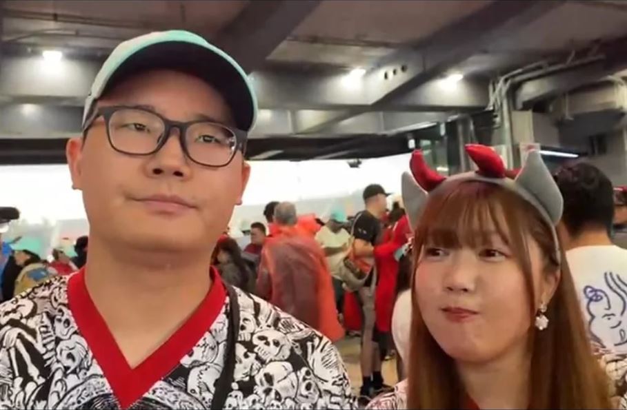 🔸 Shintaro y Akane llegaron al Estadio Alfredo Harp Helú portando con orgullo la franela de los Rieleros.