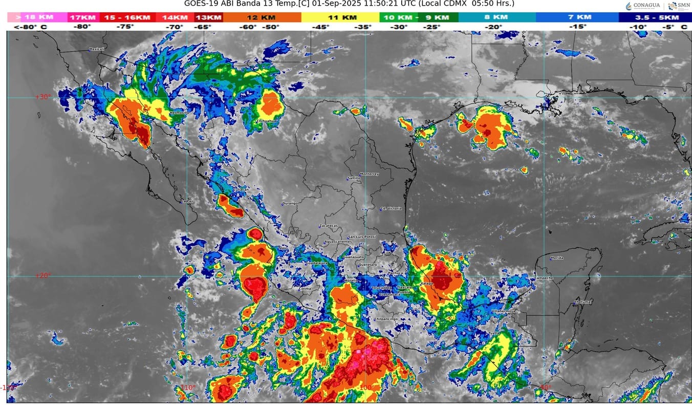 El monzón mexicano y la inestabilidad atmosférica ocasionarán lluvias puntuales intensas en Chihuahua, Sinaloa y Nayarit; muy fuertes en Sonora y Durango; además de chubascos y precipitaciones fuertes en la península de Baja California, todas acompañadas de descargas eléctricas.