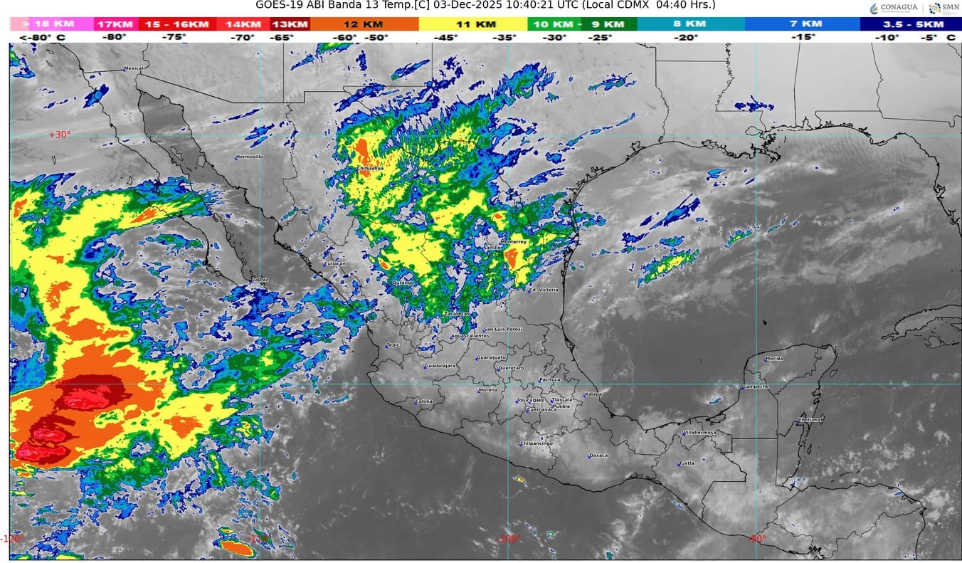 🔸La aproximación de un sistema frontal al noroeste y norte del país provocará lluvias en varias entidades.